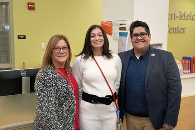 R-L: WYAA President Nic Rosales, 2015, WYHS Principal, Maria Boyarko, Shari Benjamin Wright, 1980